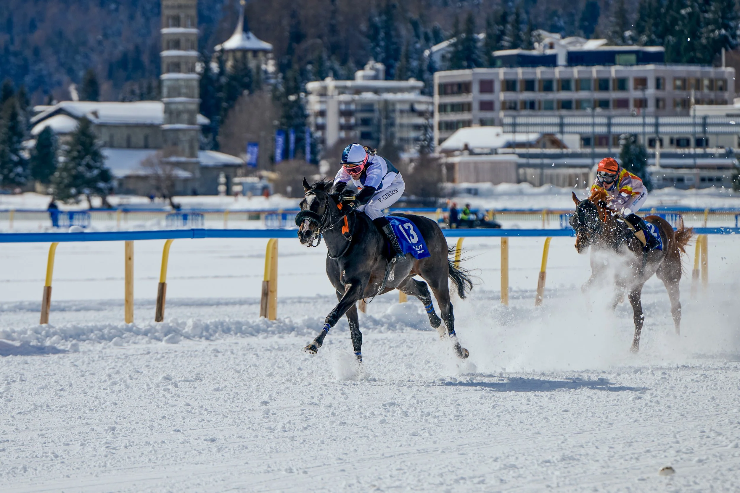 White Turf in St. Moritz: Rennsport auf 1.800 Metern Höhe – die einzigartige Kulisse des gefrorenen Sees und der alpinen Bergwelt macht den Großen Preis nicht nur sportlich, sondern auch physiologisch zu einer besonderen Herausforderung für ein Hochleistungspferd wie Snow Player.